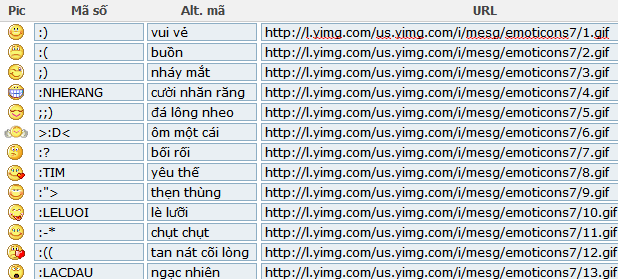 Bước 4: Copy link này http://l.yimg.com/us.yimg.com/i/mesg/emoticons7/1.gif và dán vào ô URL. Các dòng tiếp theo đổi số 1.gif thành từ 2.gif đến 79.gif và từ 100.gif đến 115.gif