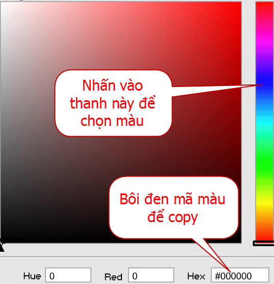 - Dùng mã màu HEX: Thầy cô dùng bảng chọn mã màu để chế tác màu và copy mã màu đó (DOWNLOAD file flash chọn mã màu TẠI ĐÂY)