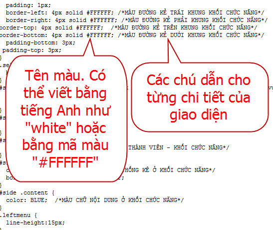 Bước 2: Thầy Cô mở file "GiaodienCSS.doc" (file Word 2003) và thay tên màu vào các vị trí cho phù hợp. Sau đó COPY đoạn code bên dưới dán vào Notepad và lưu với phần mở rộng là .css. Có thể thay đổi màu sắc cho từng mục theo ý thích để tạo phong cách riêng bằng 2 cách: